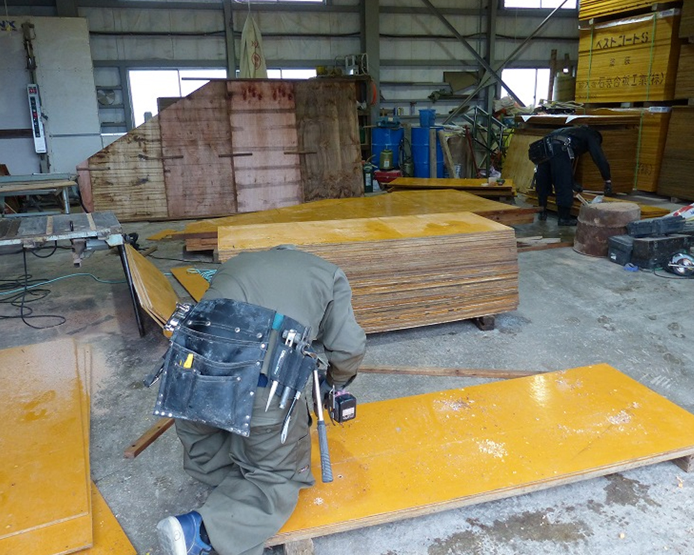 会社の加工場で、設計図に従って型枠の各パーツを作っていきます。